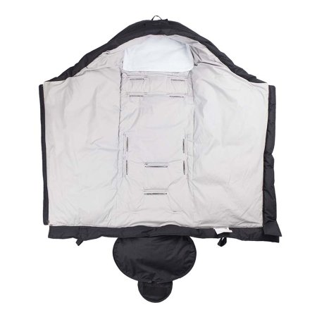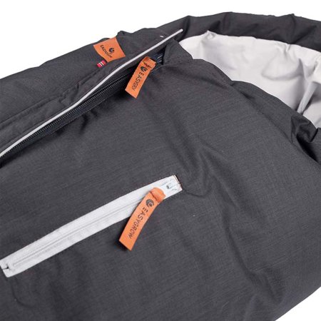 The Hood Norse sleeping bag is easy to use. It has zippers, straps on the back to attach the sleeping bag to the pram or buggy, and a zippered pocket on the front for storing dummies, keys and your wallet.