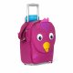The bag has an outside elastic pocket for a drinking bottle. It has a firm back and bottom and an adjustable and removable strap. The handle can be set to three heights in order to adjust it to your child's height.