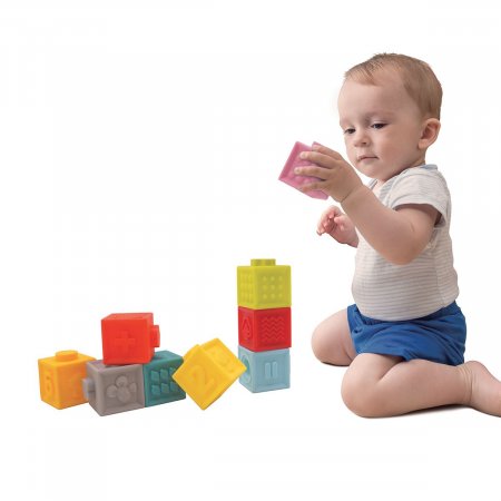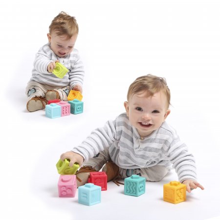 The blocks are soft, have no sharp edges, and they make a funny noise when you press them.